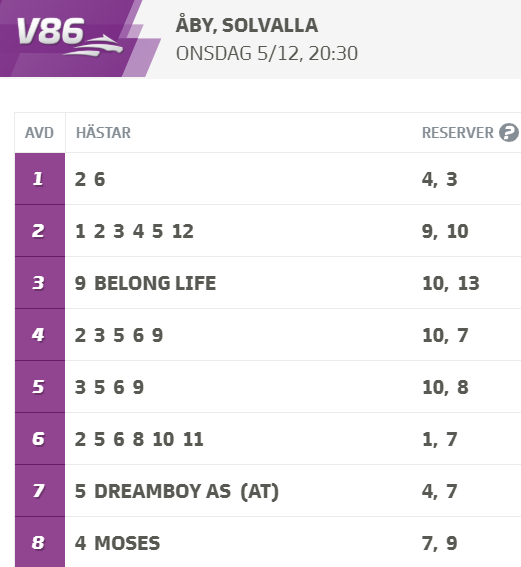Nytt Podavsnitt där jag Johan Ulvestål bjuder på mina tankar och idéer kring onsdagens V86 som avgörs på Solvalla och på min hemmabana Åby. Ta del av: – Spikarna – Dragen – Skrällarna