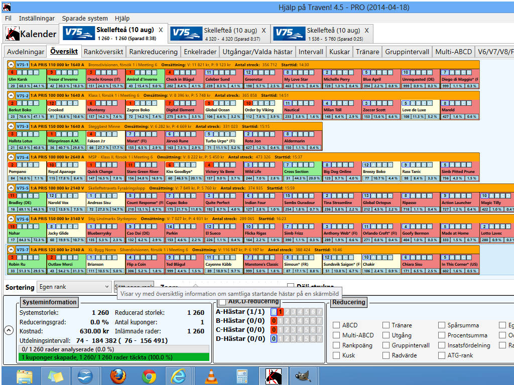 Få saker är så irriterande som när internet strular hemma. Det förstör det mesta, men nu har jag lyckats kolla lite i lopparkivet och det jag behöver för att få ihop en godkänd V75rad. Jag tror det blir favoritbetonat och det kanske kan vara svårt att jaga stora pengar.