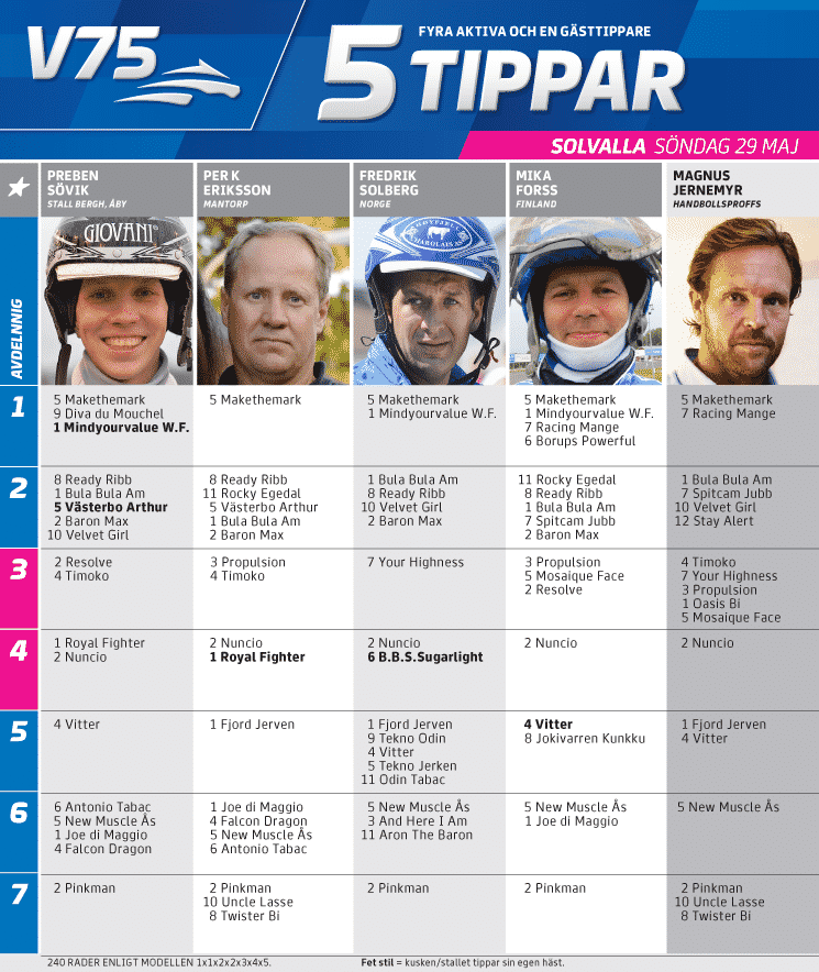 Hingsten Fem tippar V75 Elitloppssöndagen 29 maj 2016 Publicerat 28 maj, 2016 Fem tippar V75 Elitloppssöndagen 29 maj 2016