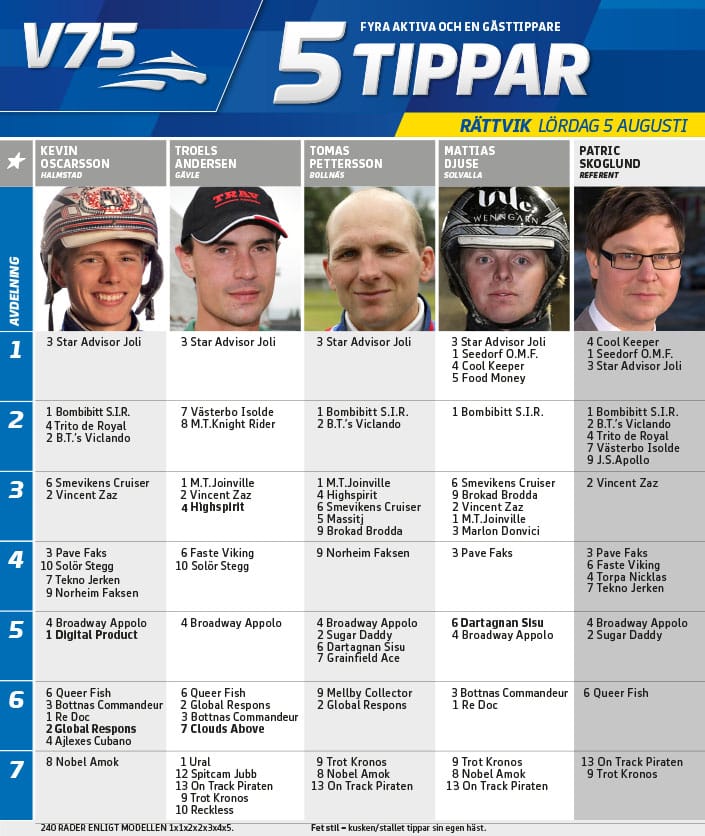 Fem tippar V75 till Rättvik 5 augusti 2017
